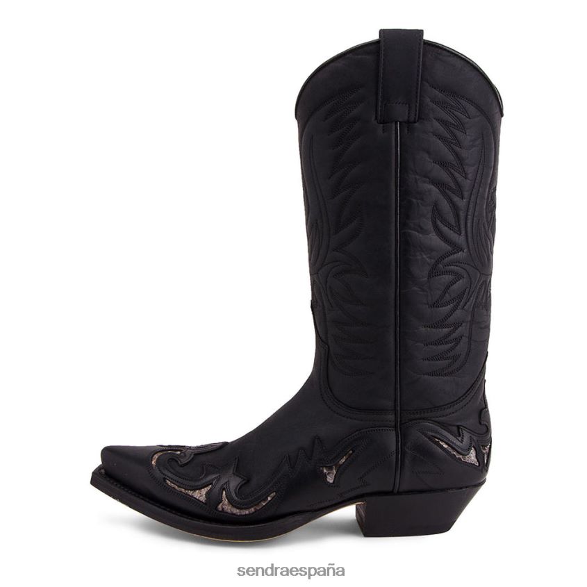 Boot de cuero Sendra en negro, una estética de vaquero con un toque de piezas pequeñas en Python natural, con un talón cubano y último, un modelo de referencia para Sendra, discreto y muy amortizable.
